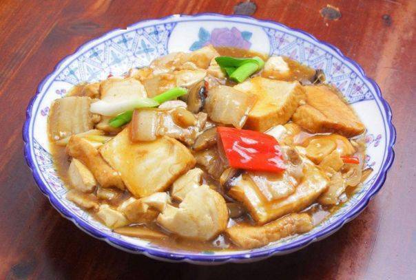 關鍵:老豆腐經(jīng)煎制后,燉制時可保持形態(tài)完整不碎。